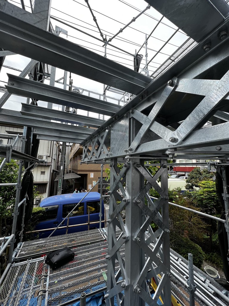 外部では鉄骨の避難観測所の骨組みが組み上がっている。水害への備え、そして地震への備え、この両輪を満たせば古い家でも十分使うことができる。古いものを大切にする行為はとても尊いものだと思う。そして僕にとってもとても正しいことに協力しているような気持ちになれるとても大切なことであるのだ。こちらの写真は見事なので掲載しておこう。