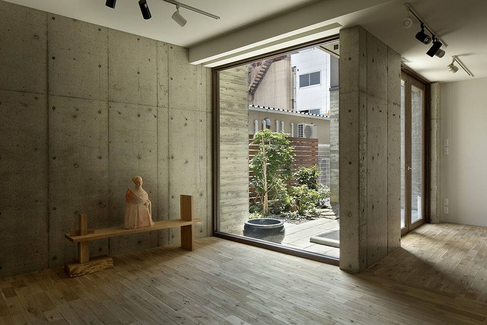 1階は、剥き出しの粗いコンクリートをそのままに残しています。