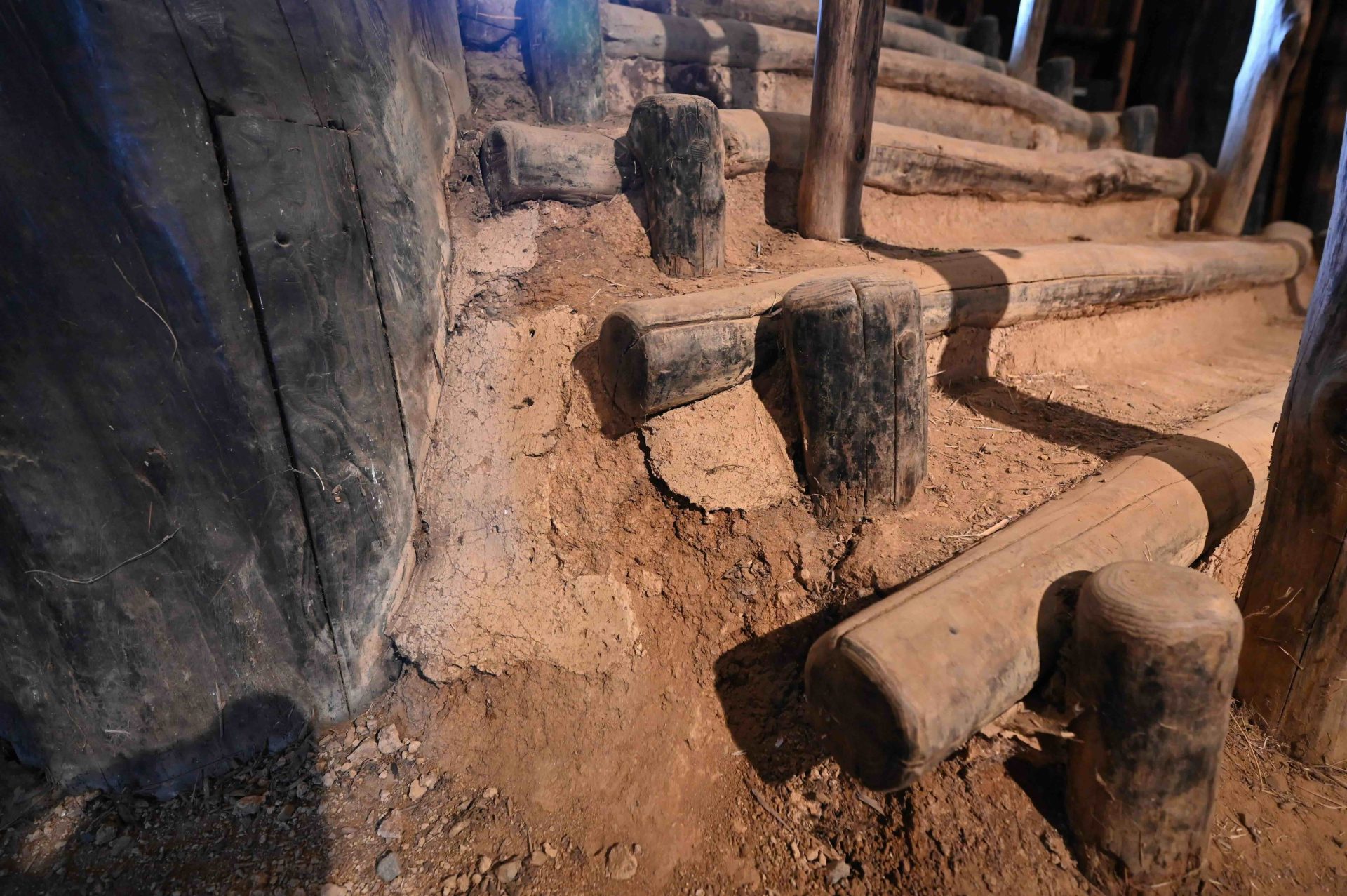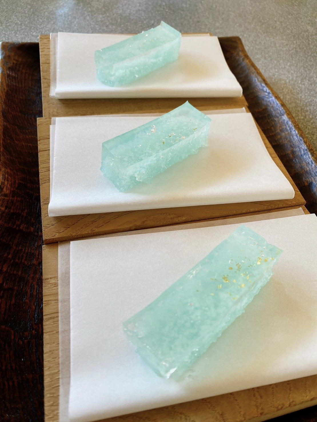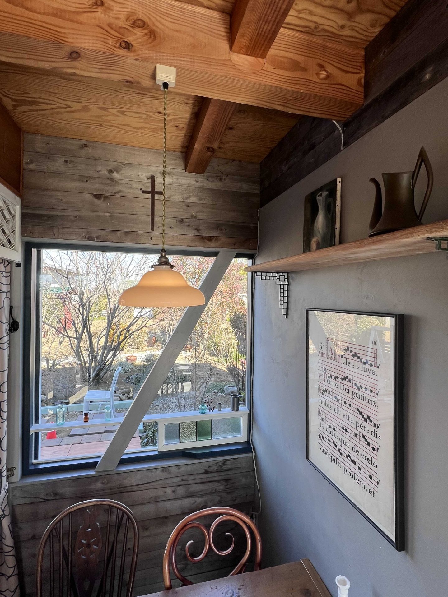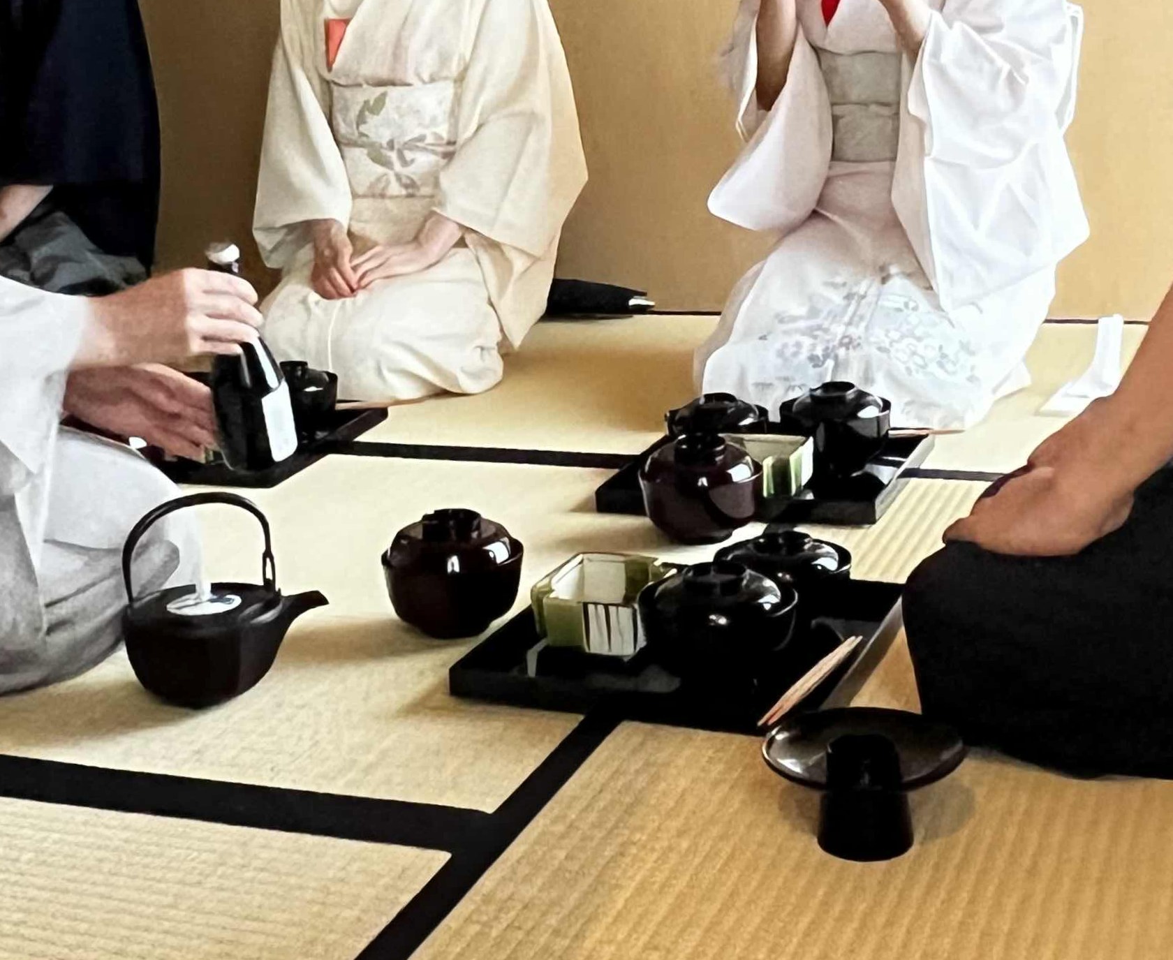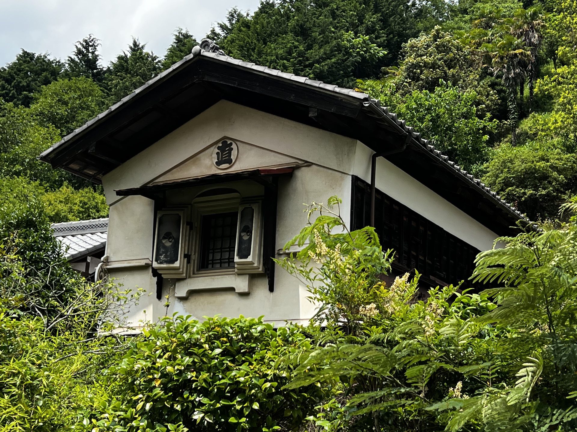 ここまで終わったら、約1ヶ月かけてカラカラに乾燥させる。冬場の場合は、もう少しかかることもある。伝統構法の土壁というのは、こういうところで時間がかかるので、工期に制限があると使いにくいのだけれど、一生に一度の大切に家であるからこそ、これくらいの余裕は持ちたいものだ。乾燥したら、上塗りに入る。上塗りは聚楽土・稲荷山黄土・浅葱土・白土など、様々な産地の土を好みで用いる。これらの土には様々な色があって、好みに応じてブレンドして使うこともできる。ますいいリビングカンパニーのモデルハウスにある茶室には、聚楽土と沖縄の赤土を混ぜた、少し鮮やかな土壁が塗られている。僕の家の茶室には、グーッと色が沈み込んだような錆びた色合いの聚楽土を塗ってもらった。上塗りの際には「土・細かい藁・砂」を混ぜた上塗り土を2回に分けて、薄く塗りつける。その仕上げ方も、フワッとした感じの平滑な仕上げから、コテを引きずって仕上げる引きずり仕上げ、太くて長い藁を円相の形に散らしたところに薄く土を塗りつけて引きずって仕上げる投げすさ仕上げなど様々だ。投げすさ仕上げというのは、千利休が作ったとされている、京都の大山崎にある妙喜庵「待庵」の壁の仕上げである。僕の家の茶室の床間の中はこの投げスサ仕上げなのだが、時間と共に、少しずつ土が錆びてきて、対照的に藁がボンヤリ姿を現してくる様子は、見ていてとても楽しい物である。左官の壁は時間を感じることができるのだ。今回の床の間の中は、黒い仕上げとしてそこにシルバーの紅葉の模様を散らす。これは改修工事前の床の間の意匠と同じである。