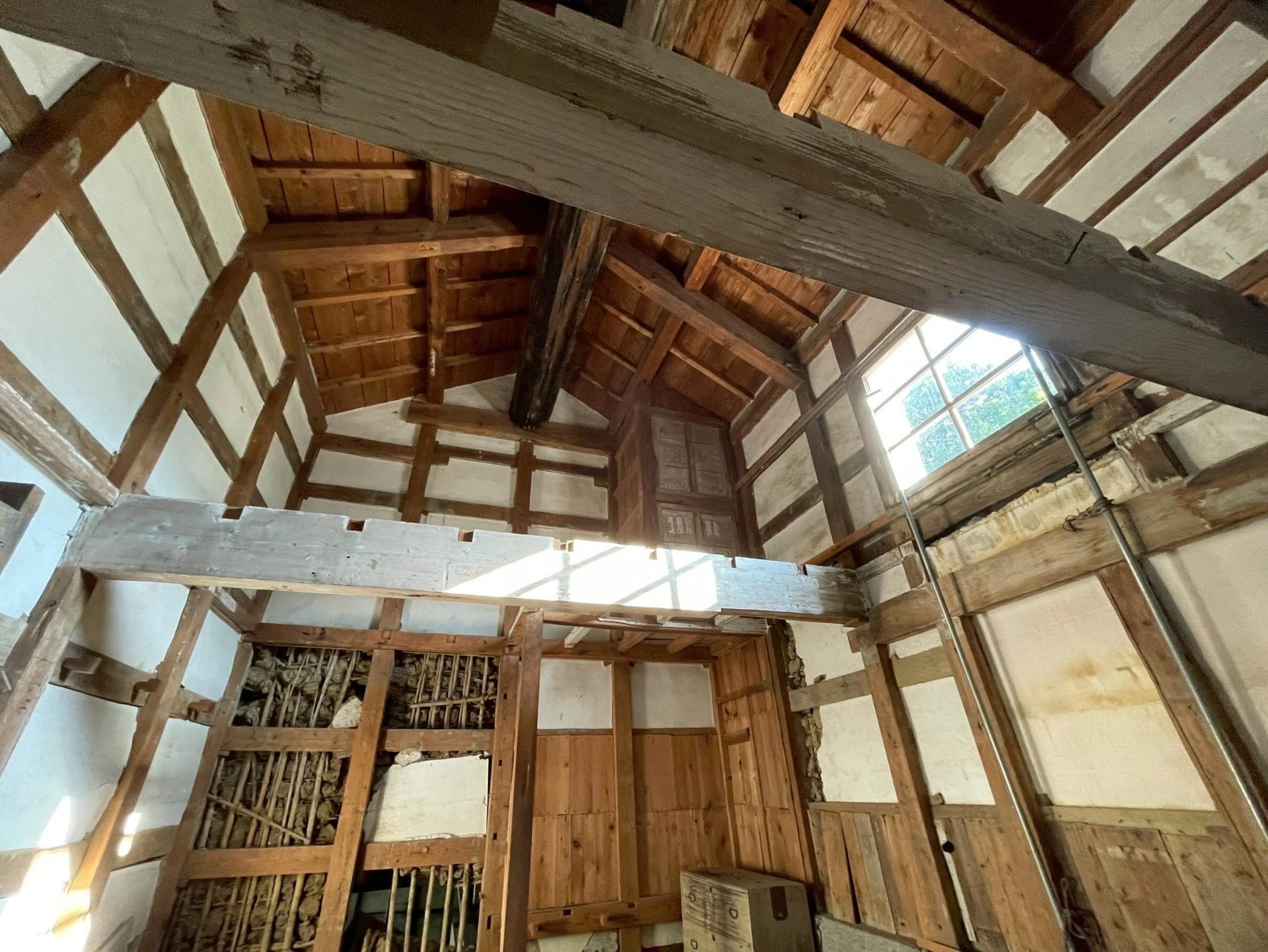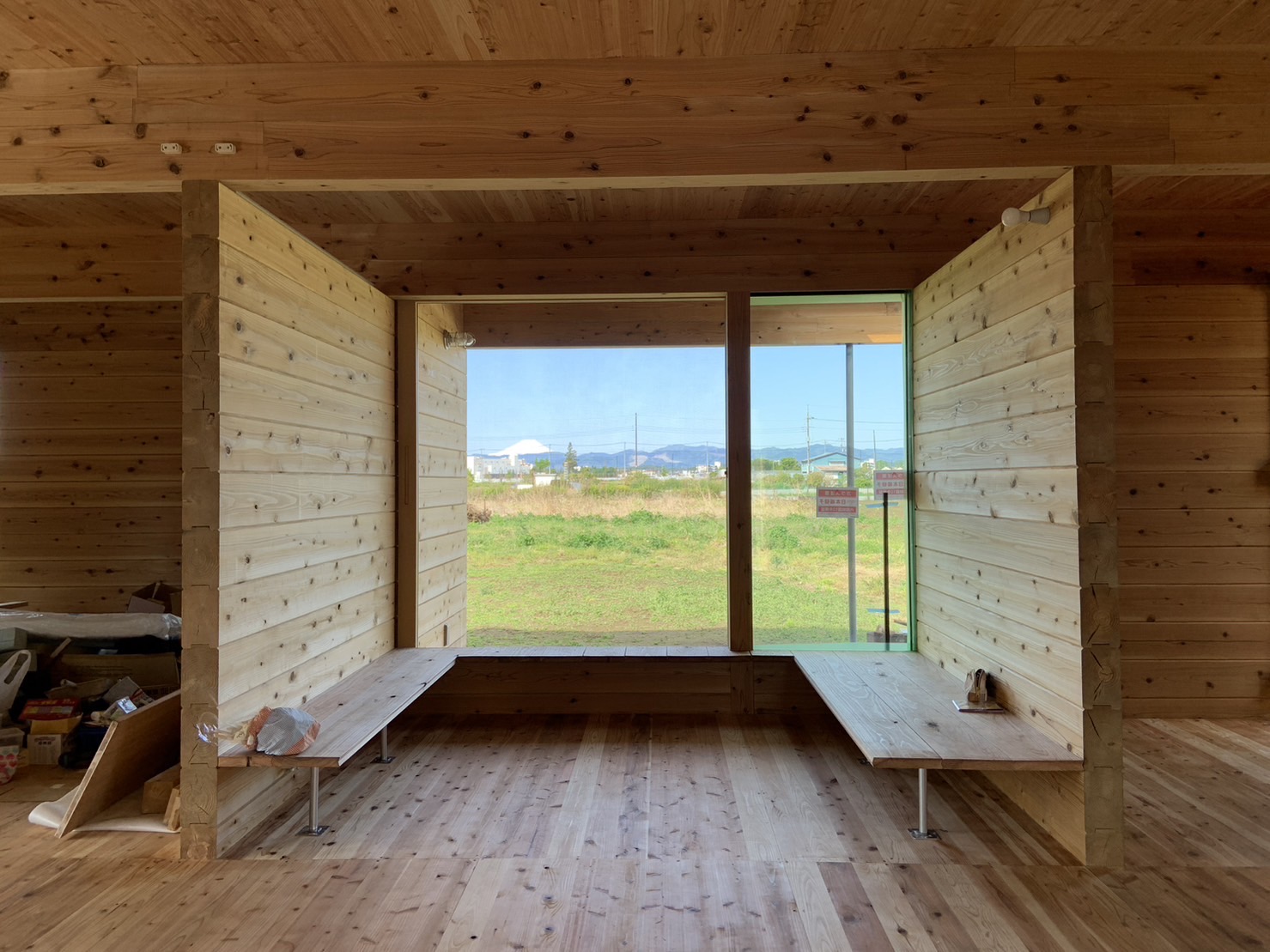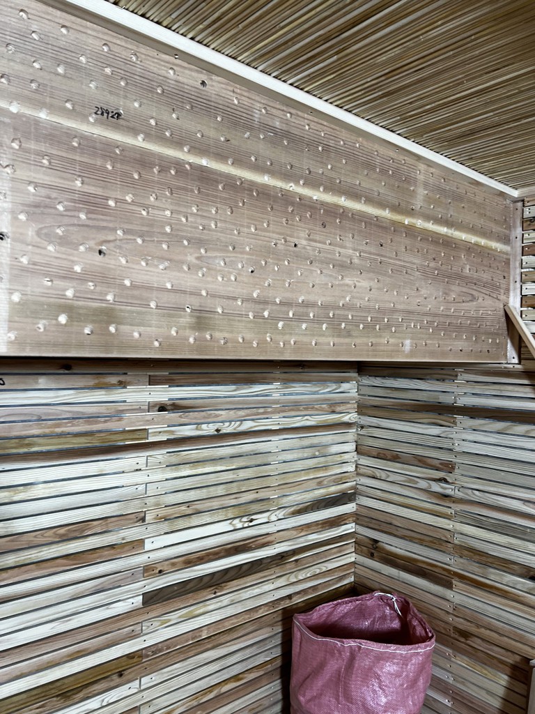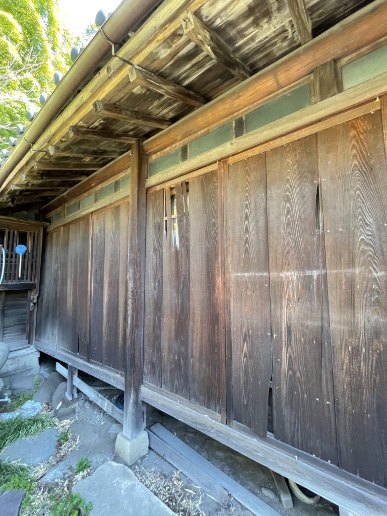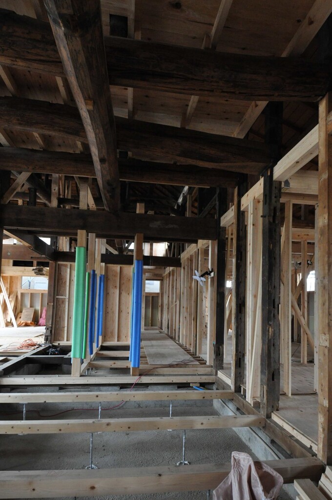今日は埼玉県川口市にて進行中のSさんの家にて、左官の小沼充さんとの打ち合わせを行った。この現場は築100年の古民家再生である。新しいプランには、座敷の続き間があって、8畳の部屋には炉が切られ茶室となる。壁の下地は木摺で作られており、そこに小沼さんの土壁を仕上げてもらう予定だ。茶室や和室の壁を左官にする場合には、木摺り下地に土壁を仕上げてもらう。木摺下地というのは、杉の細材を柱・間柱に9mmほどの隙間を開けて打ち付けたもので、トテモ古くから伝わる構法である。一般的な石膏ボードの下地と比べると、塗りつけられる土の厚さが厚く、めり込みも入れると30mmほどの厚みとなる。小沼さんの土壁仕上げは、はじめに下塗りとして、「消石灰・麻すさ・砂・角また糊」を混ぜた漆喰を塗る。これは、次に塗る土が、シッカリと壁に付着しやすいようにするためのものである。続いて、中塗り土として、「中塗土・藁すさ・砂」を混ぜたものを塗る。この中塗り土というのは、藁が発酵するまで寝かせて使うそうだ。なんともいえない鼻をつくようなツーンという匂いがすればするほど、十分発酵した土を使っているということだ。発酵した藁にはバチルス菌群という様々な微生物がいるから、発酵が進むとそれらが活性化してより強い土になると言われている。小沼さんの場合は、まず1回塗り付けたら、そこにいぐさを伏せ込み土を被せ、続いて尺とんぼと呼ばれる麻紐を釘に結んだ状態のものを格子状に伏せ込んでいく。最近はなかなかこういう作業をやらなくなってしまったそうだが、小沼さんはこの作業を大切にしている。その後すぐに追っかけで、もう一度中塗土を塗るところまでが一つ目の工程である。