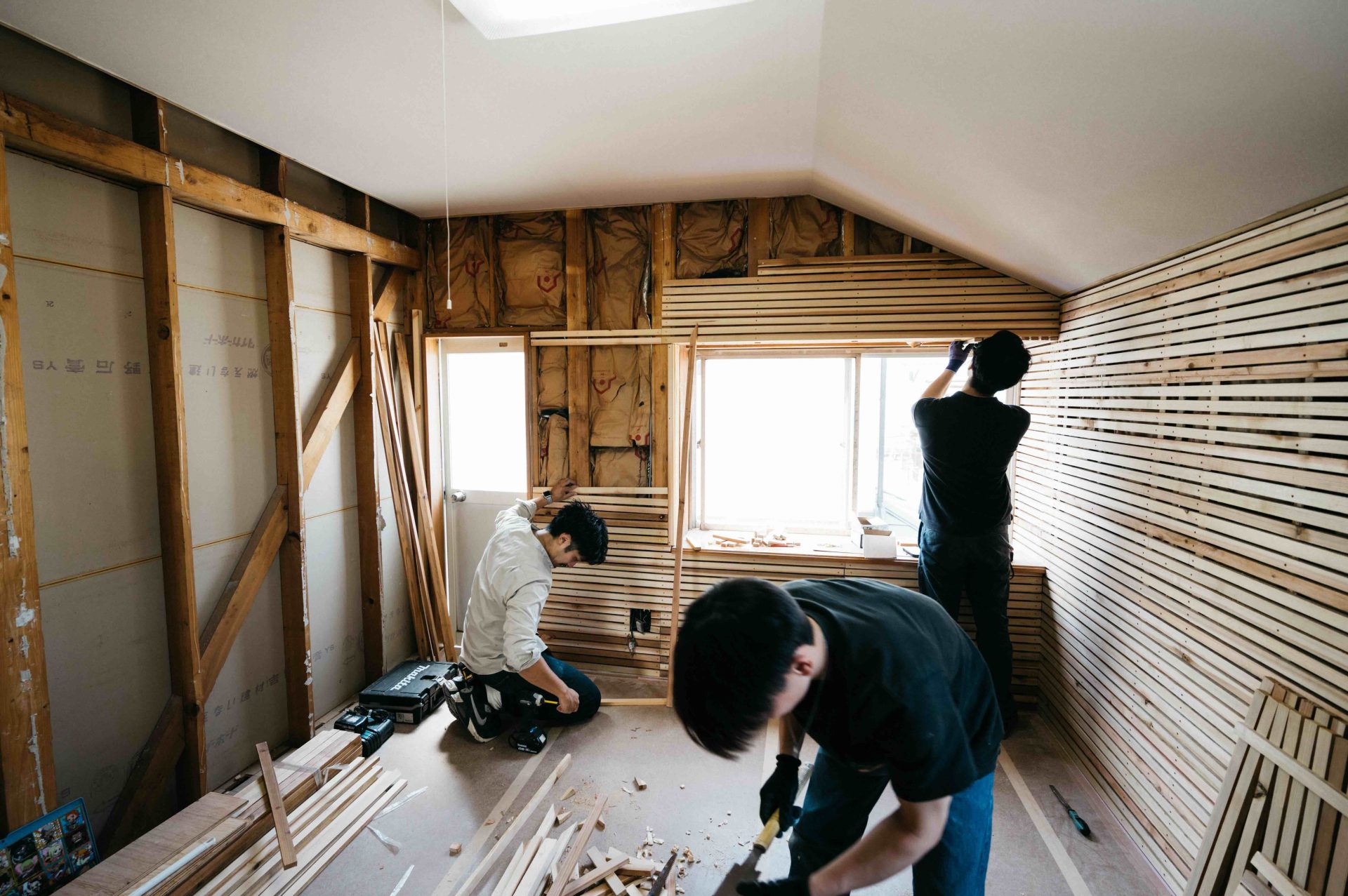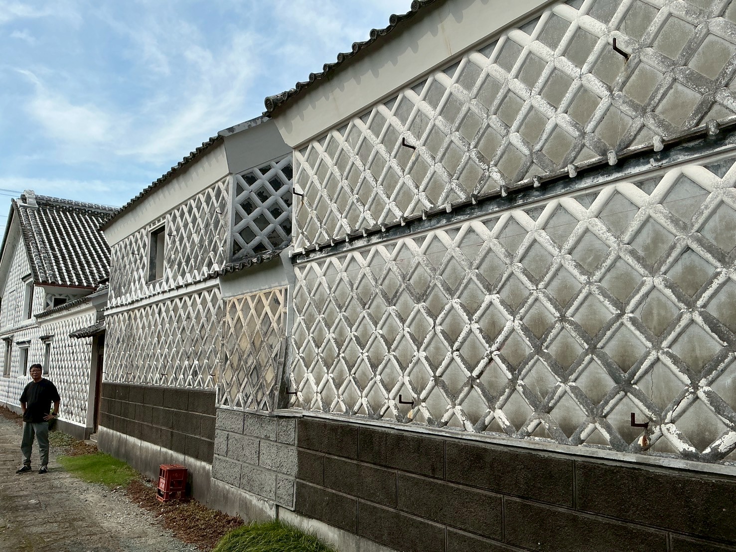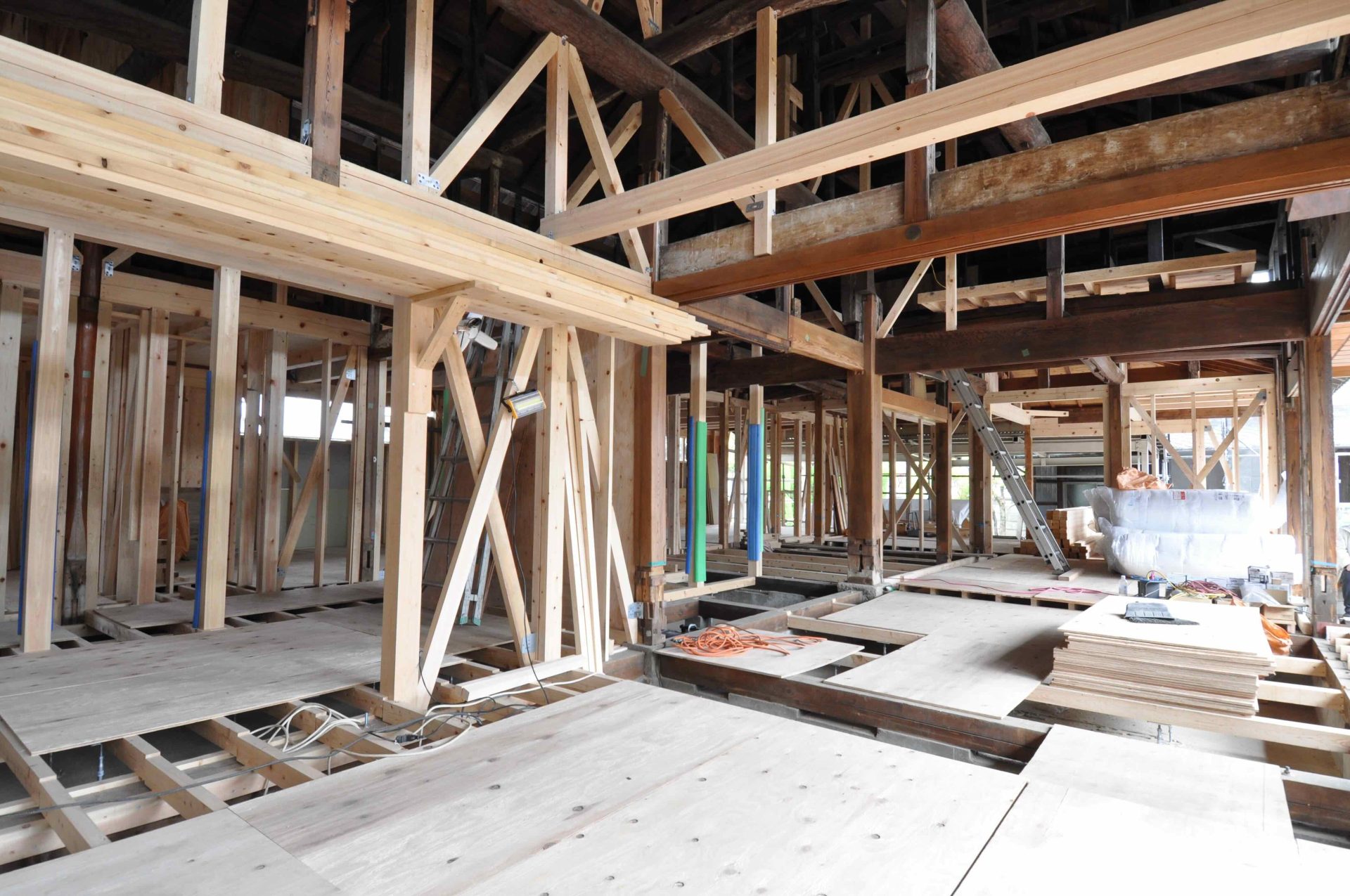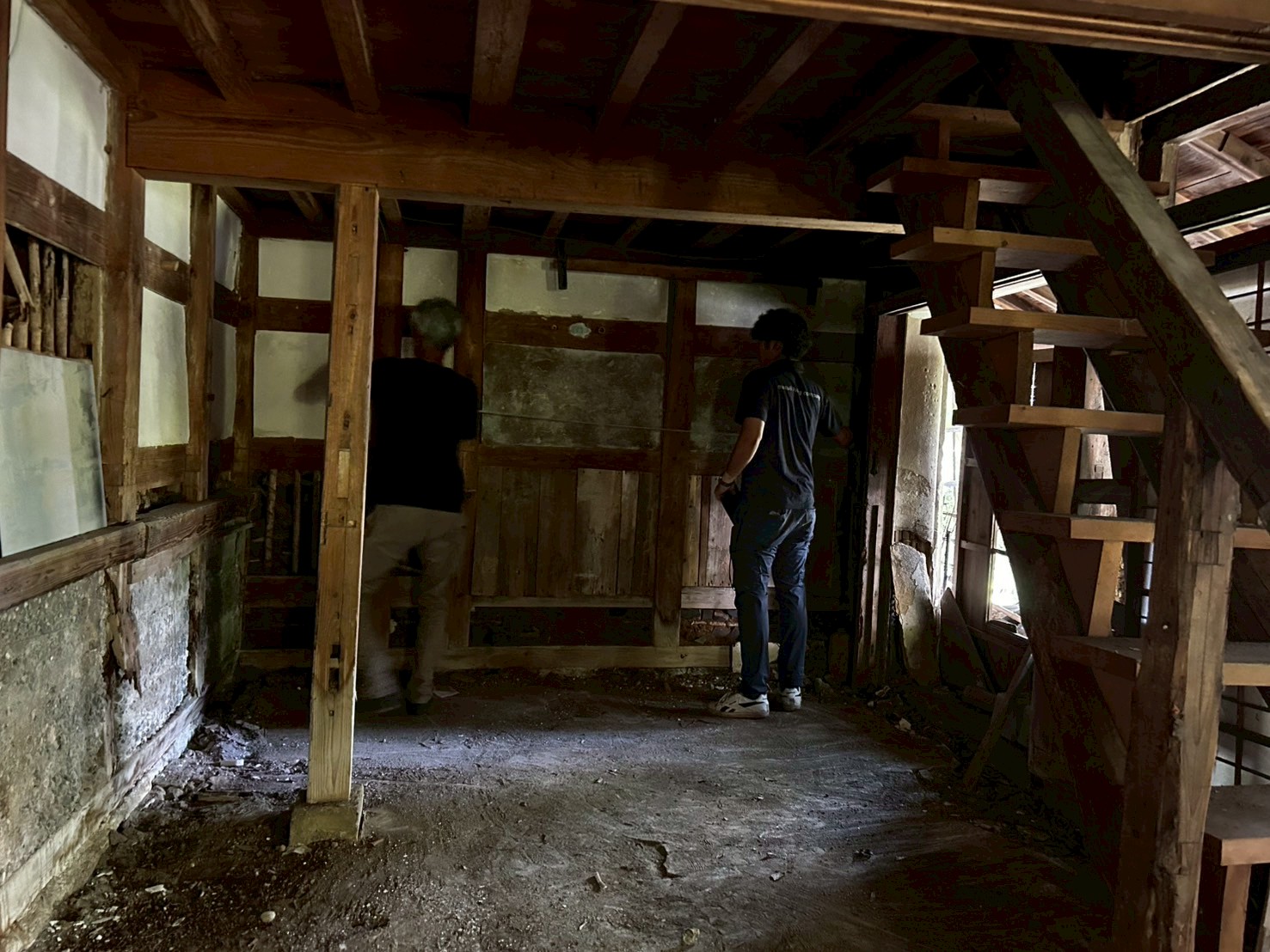 今日は埼玉県川口市にて進行中のSさんの家にて、左官の小沼充さんとの打ち合わせを行った。この現場は築100年の古民家再生である。新しいプランには、座敷の続き間があって、8畳の部屋には炉が切られ茶室となる。壁の下地は木摺で作られており、そこに小沼さんの土壁を仕上げてもらう予定だ。茶室や和室の壁を左官にする場合には、木摺り下地に土壁を仕上げてもらう。木摺下地というのは、杉の細材を柱・間柱に9mmほどの隙間を開けて打ち付けたもので、トテモ古くから伝わる構法である。一般的な石膏ボードの下地と比べると、塗りつけられる土の厚さが厚く、めり込みも入れると30mmほどの厚みとなる。小沼さんの土壁仕上げは、はじめに下塗りとして、「消石灰・麻すさ・砂・角また糊」を混ぜた漆喰を塗る。これは、次に塗る土が、シッカリと壁に付着しやすいようにするためのものである。続いて、中塗り土として、「中塗土・藁すさ・砂」を混ぜたものを塗る。この中塗り土というのは、藁が発酵するまで寝かせて使うそうだ。なんともいえない鼻をつくようなツーンという匂いがすればするほど、十分発酵した土を使っているということだ。発酵した藁にはバチルス菌群という様々な微生物がいるから、発酵が進むとそれらが活性化してより強い土になると言われている。小沼さんの場合は、まず1回塗り付けたら、そこにいぐさを伏せ込み土を被せ、続いて尺とんぼと呼ばれる麻紐を釘に結んだ状態のものを格子状に伏せ込んでいく。最近はなかなかこういう作業をやらなくなってしまったそうだが、小沼さんはこの作業を大切にしている。その後すぐに追っかけで、もう一度中塗土を塗るところまでが一つ目の工程である。