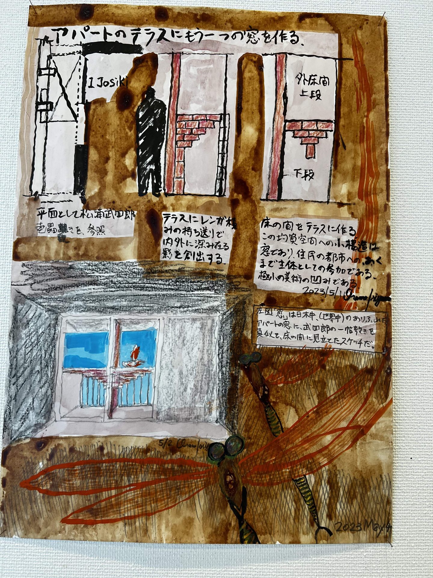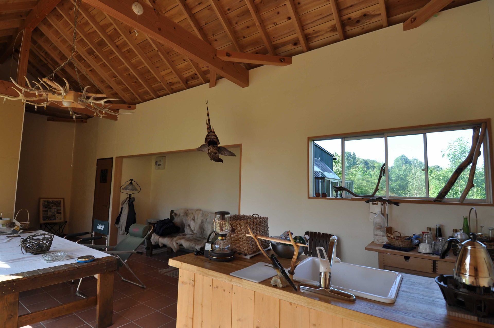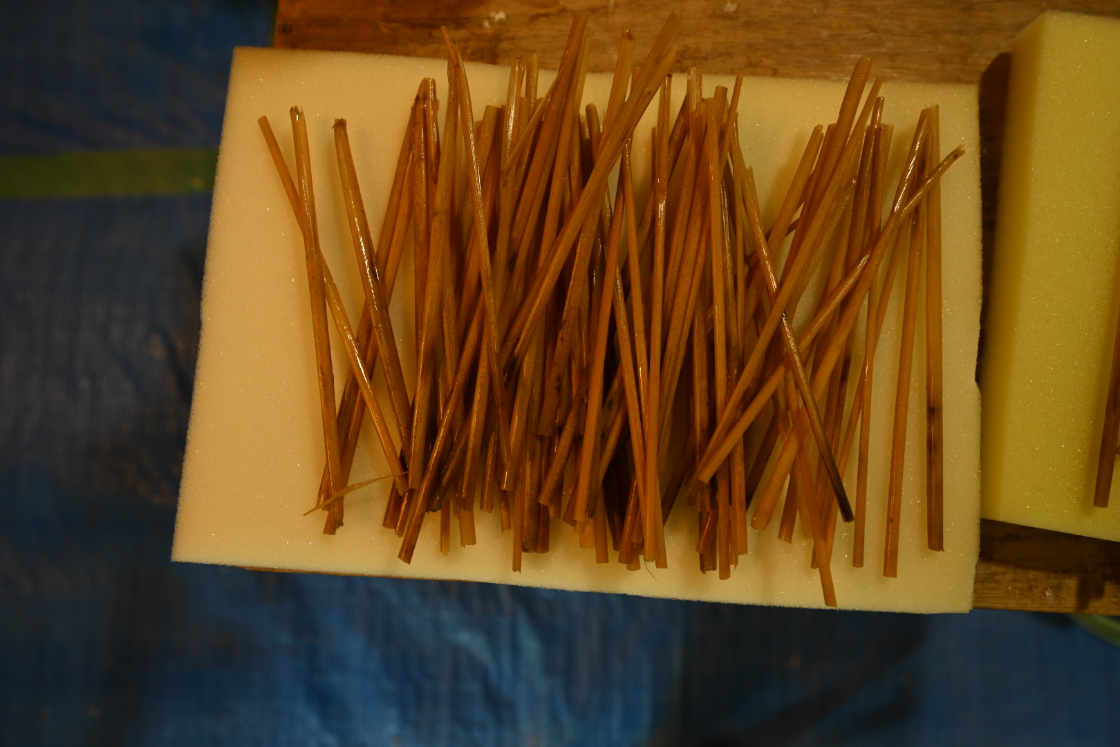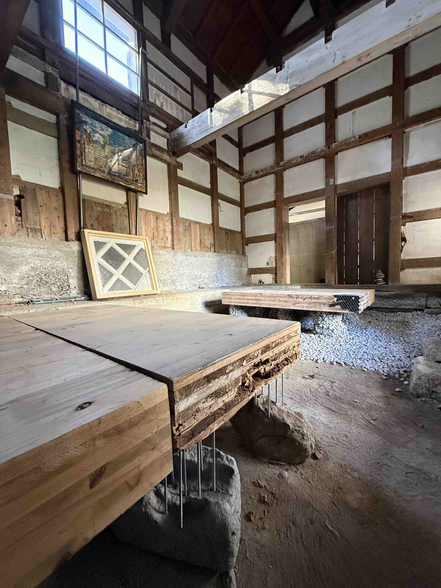 今日は埼玉県川口市にて進行中のSさんの家にて、左官の小沼充さんとの打ち合わせを行った。この現場は築100年の古民家再生である。新しいプランには、座敷の続き間があって、8畳の部屋には炉が切られ茶室となる。壁の下地は木摺で作られており、そこに小沼さんの土壁を仕上げてもらう予定だ。茶室や和室の壁を左官にする場合には、木摺り下地に土壁を仕上げてもらう。木摺下地というのは、杉の細材を柱・間柱に9mmほどの隙間を開けて打ち付けたもので、トテモ古くから伝わる構法である。一般的な石膏ボードの下地と比べると、塗りつけられる土の厚さが厚く、めり込みも入れると30mmほどの厚みとなる。小沼さんの土壁仕上げは、はじめに下塗りとして、「消石灰・麻すさ・砂・角また糊」を混ぜた漆喰を塗る。これは、次に塗る土が、シッカリと壁に付着しやすいようにするためのものである。続いて、中塗り土として、「中塗土・藁すさ・砂」を混ぜたものを塗る。この中塗り土というのは、藁が発酵するまで寝かせて使うそうだ。なんともいえない鼻をつくようなツーンという匂いがすればするほど、十分発酵した土を使っているということだ。発酵した藁にはバチルス菌群という様々な微生物がいるから、発酵が進むとそれらが活性化してより強い土になると言われている。小沼さんの場合は、まず1回塗り付けたら、そこにいぐさを伏せ込み土を被せ、続いて尺とんぼと呼ばれる麻紐を釘に結んだ状態のものを格子状に伏せ込んでいく。最近はなかなかこういう作業をやらなくなってしまったそうだが、小沼さんはこの作業を大切にしている。その後すぐに追っかけで、もう一度中塗土を塗るところまでが一つ目の工程である。