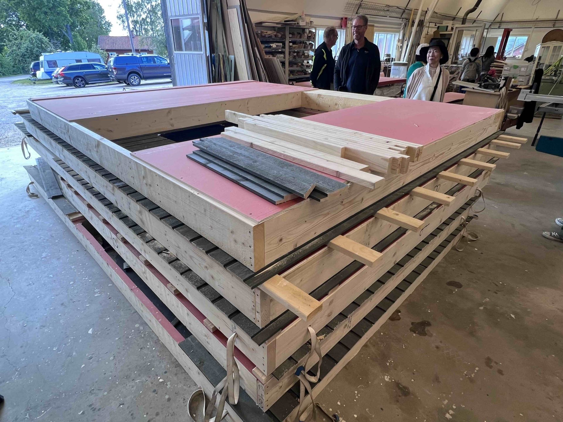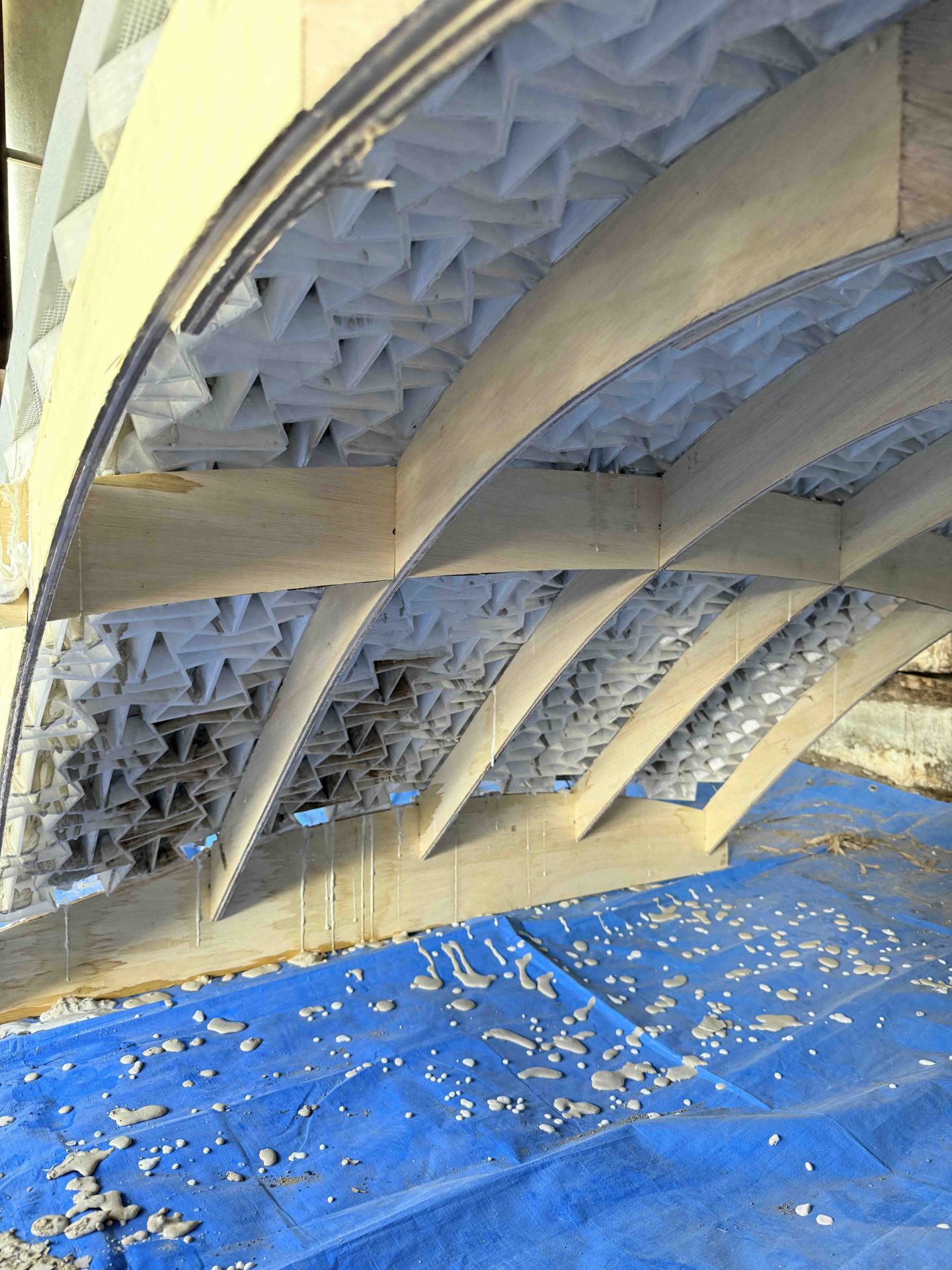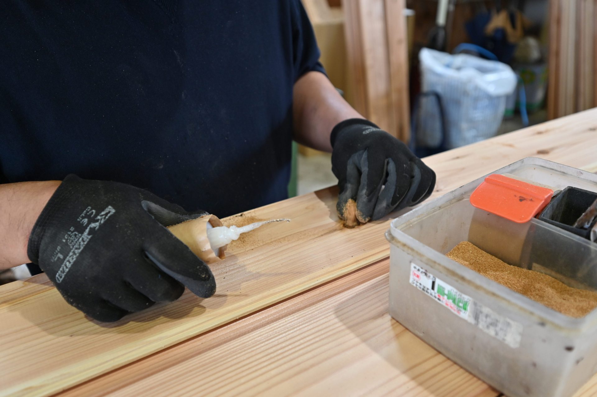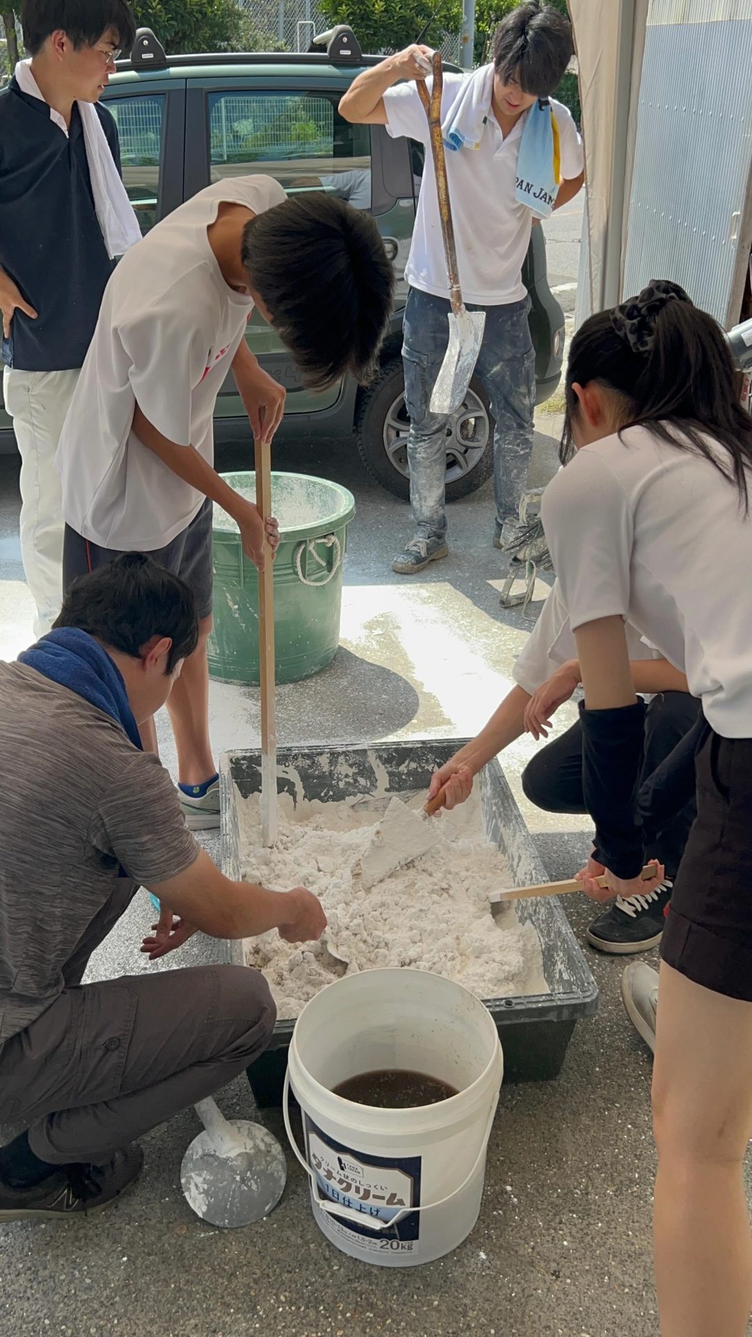 今日は埼玉県川口市にて進行中のSさんの家にて、左官の小沼充さんとの打ち合わせを行った。この現場は築100年の古民家再生である。新しいプランには、座敷の続き間があって、8畳の部屋には炉が切られ茶室となる。壁の下地は木摺で作られており、そこに小沼さんの土壁を仕上げてもらう予定だ。茶室や和室の壁を左官にする場合には、木摺り下地に土壁を仕上げてもらう。木摺下地というのは、杉の細材を柱・間柱に9mmほどの隙間を開けて打ち付けたもので、トテモ古くから伝わる構法である。一般的な石膏ボードの下地と比べると、塗りつけられる土の厚さが厚く、めり込みも入れると30mmほどの厚みとなる。小沼さんの土壁仕上げは、はじめに下塗りとして、「消石灰・麻すさ・砂・角また糊」を混ぜた漆喰を塗る。これは、次に塗る土が、シッカリと壁に付着しやすいようにするためのものである。続いて、中塗り土として、「中塗土・藁すさ・砂」を混ぜたものを塗る。この中塗り土というのは、藁が発酵するまで寝かせて使うそうだ。なんともいえない鼻をつくようなツーンという匂いがすればするほど、十分発酵した土を使っているということだ。発酵した藁にはバチルス菌群という様々な微生物がいるから、発酵が進むとそれらが活性化してより強い土になると言われている。小沼さんの場合は、まず1回塗り付けたら、そこにいぐさを伏せ込み土を被せ、続いて尺とんぼと呼ばれる麻紐を釘に結んだ状態のものを格子状に伏せ込んでいく。最近はなかなかこういう作業をやらなくなってしまったそうだが、小沼さんはこの作業を大切にしている。その後すぐに追っかけで、もう一度中塗土を塗るところまでが一つ目の工程である。