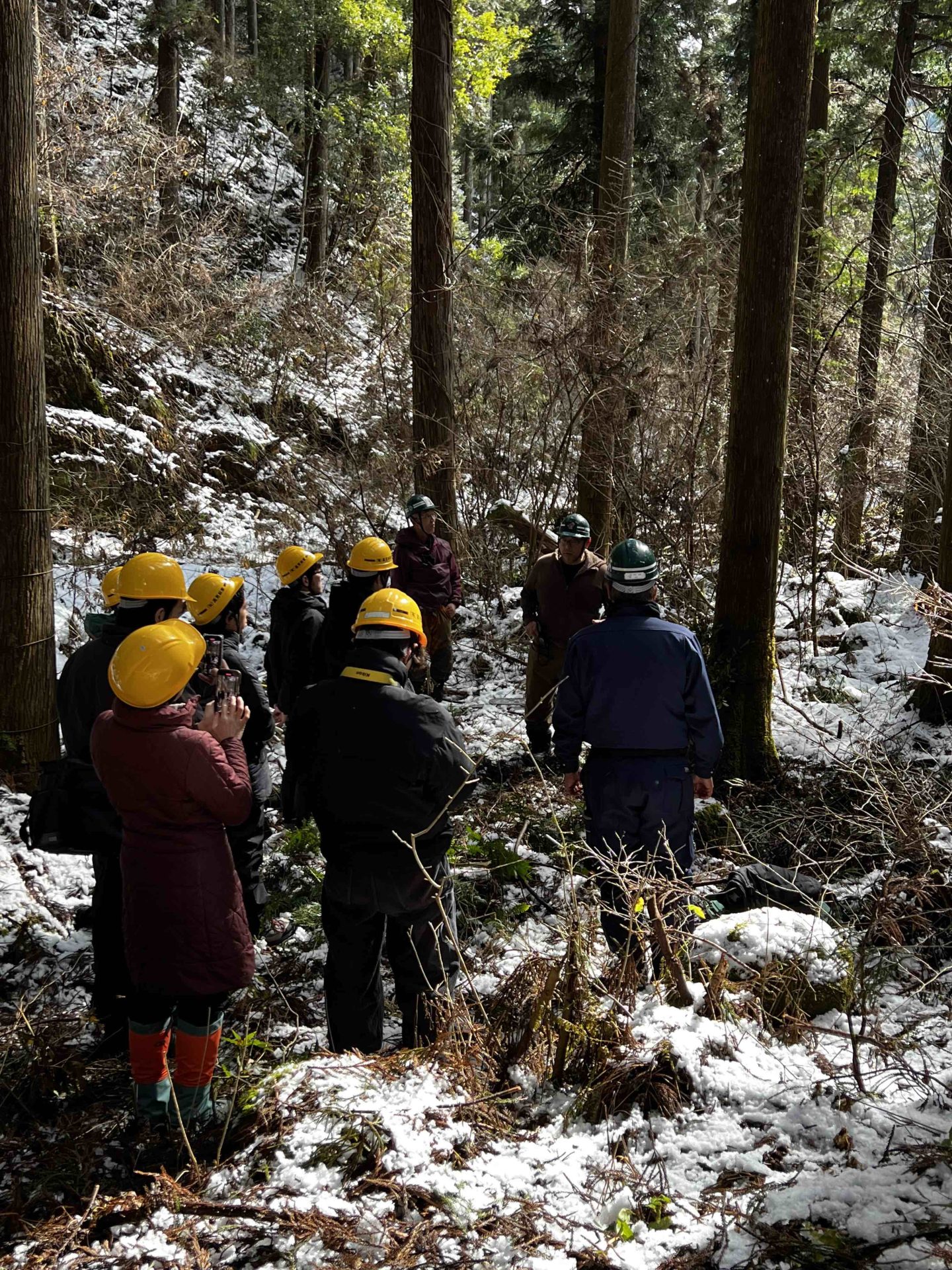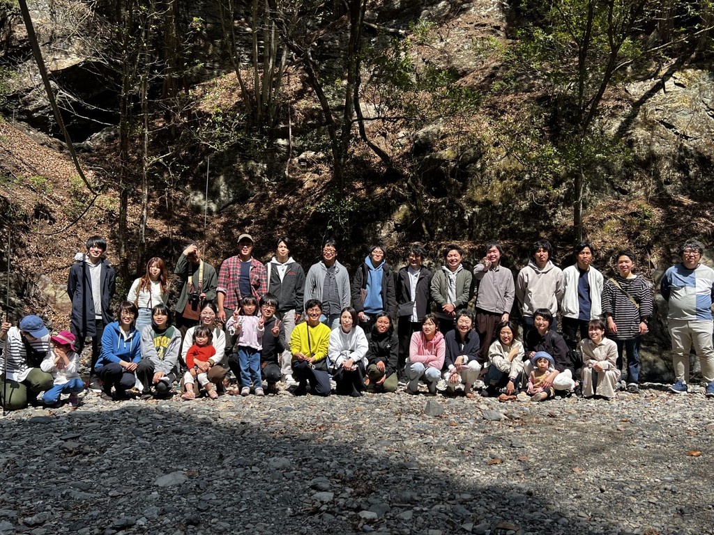 最後に記念撮影である。今回はスタッフも皆、自分たちのお子様と一緒に体験した。田部井君も松原さんも良い家族サービスができたと思う。小さなお子様にとって、実際の山で木を伐るなど本当に貴重な体験だろう。協力者の皆様に心より感謝したい。