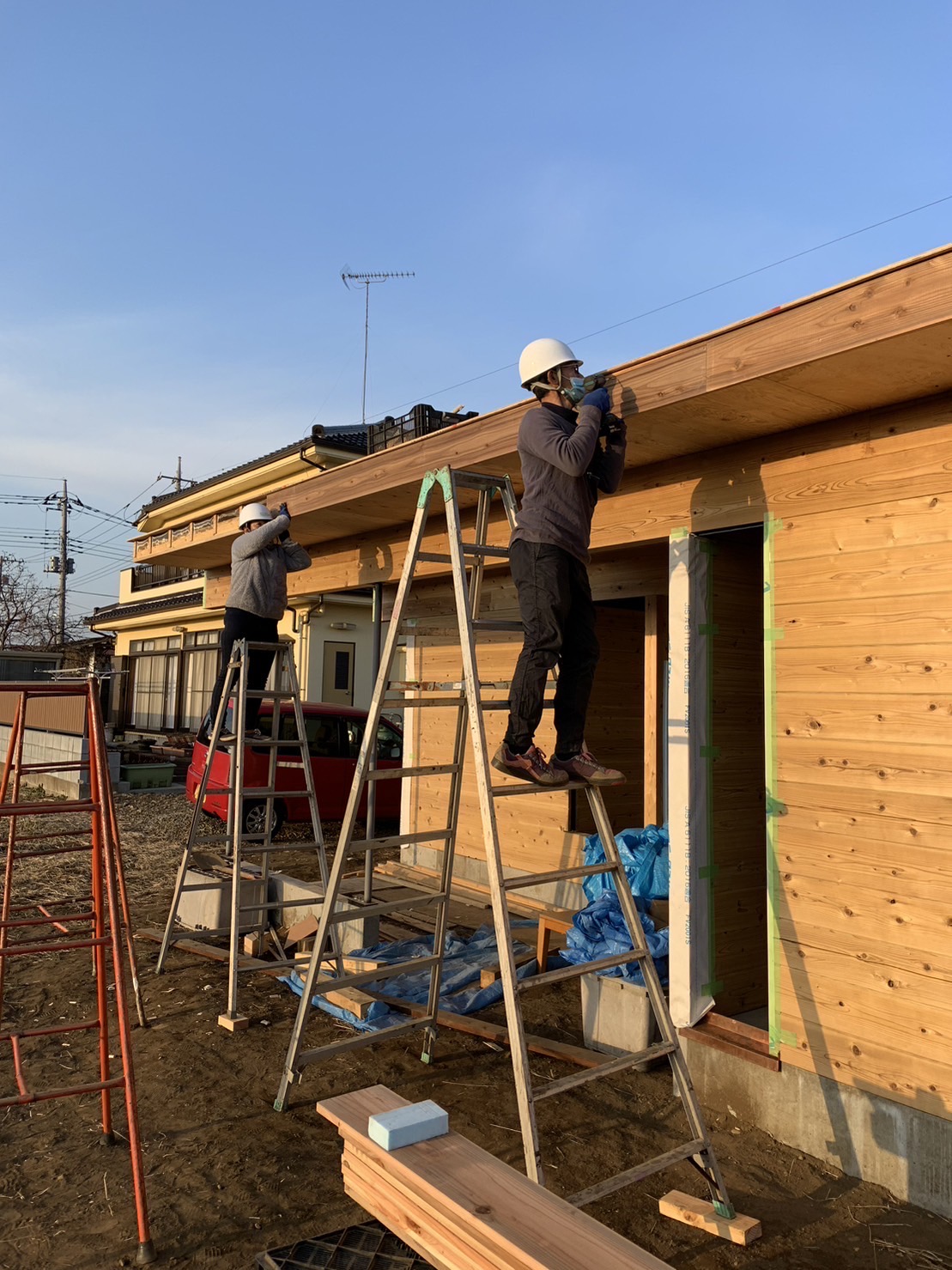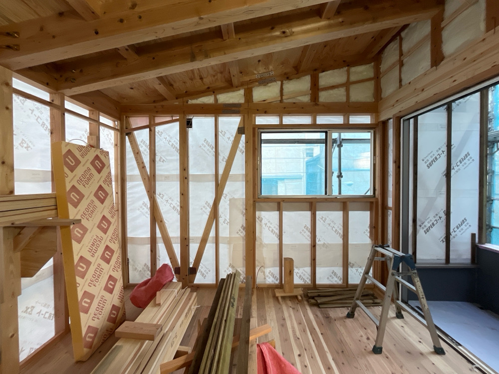 今日は埼玉県川口市にて進行中のSさんの家にて、左官の小沼充さんとの打ち合わせを行った