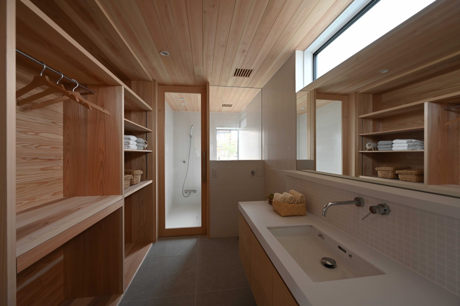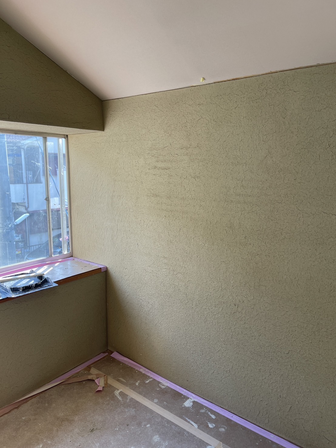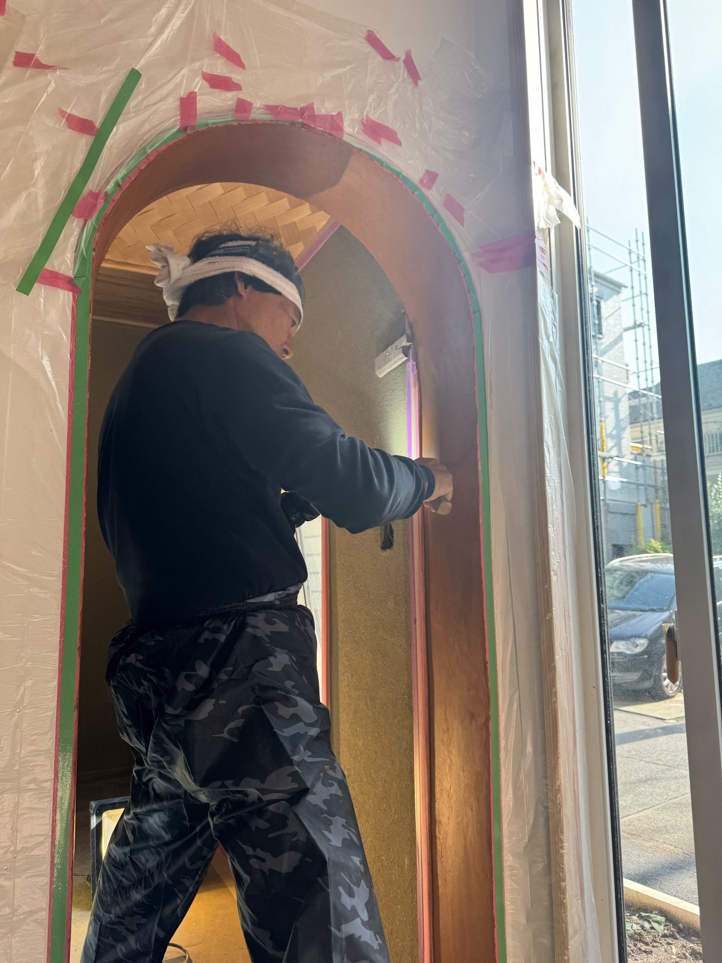 写真は玄関である。この玄関を入ったところの引き分けの引き戸の袖壁には赤の大津磨きをやろうと思っている。僕の現場では、どこかしらに大津磨きを採用しているのだが、今回は玄関にした。いつもは茶室の茶道口の小口壁などに採用しているのだが、土の磨きとあってしっとりとした良い風合いがある。これは漆喰磨きとは一味違う良さがあるのだ。