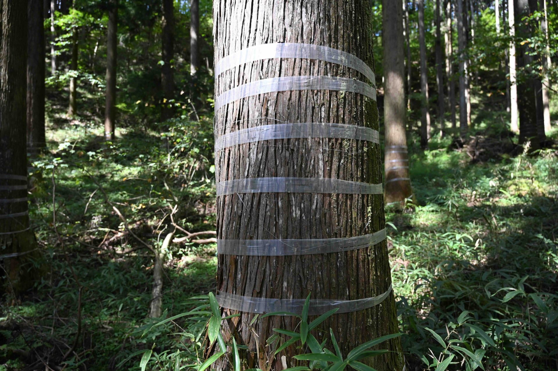こちらは鹿よけ。ナイロンだけれど、自然に還る素材である。
