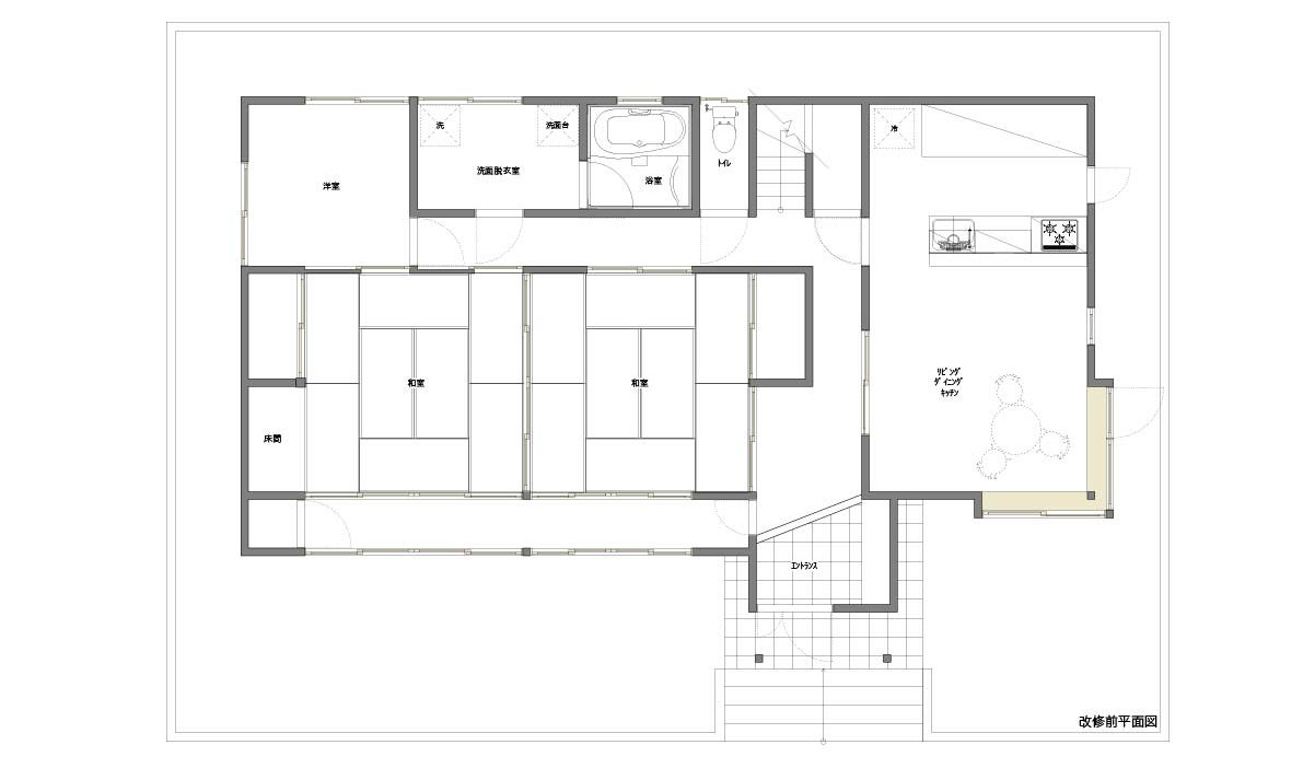 名 称 伊奈町の住み継がれる家 所在地 埼玉県伊奈町 竣 工 2022年11月 設 計 ますいいリビングカンパニー川口本社 施 工 ますいいリビングカンパニー川口本社 構 造 木造2階建て 屋 根 既存瓦 外 壁 既存リシン吹付塗装+フレキシブルボード 開口部 アルミサッシ・ガラス交換・内側木製建具 壁・天井 漆喰・ビニルクロス 床 唐松フローリング・CFシート・既存フローリング